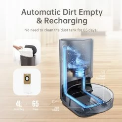 The dust tank is emptied after every cleaning. Using the circulation of the air, the dock sucks the debris out of the tank in a more efficient way.