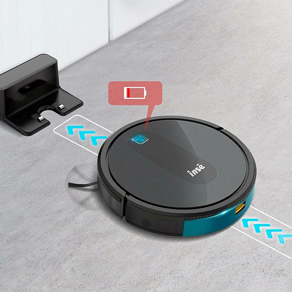 The impact rod and silicone strips under the INSE E6 robot can collect dog hair, cat hair, cat litter, and debris more effectively. The advanced brushless motor provides strong suction and effectively reduces noise. Suitable for medium and low pile carpets, ceramic tiles, laminates, parquet floors, etc.