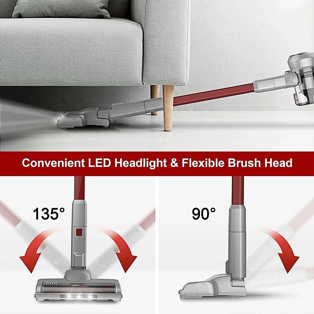 This highly flexible and low-profile brush is equipped with LED headlights, allowing you to find dusty corners in sofas and cabinets. The 180° rotating brush head design allows the vacuum cleaner to adjust the angle flexibly.