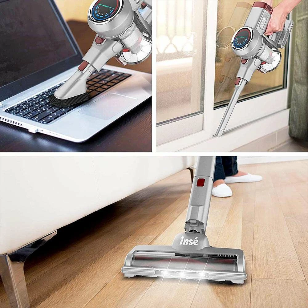 INSE S7 cordless vacuum cleaner is equipped with an 80,000 rpm high-speed brushless motor, which can stably output 220W high power and 25Kpa super suction power. It can easily suck up dust, hair, pet fur, and food residue on low-density carpets, floor mats or hard floors.