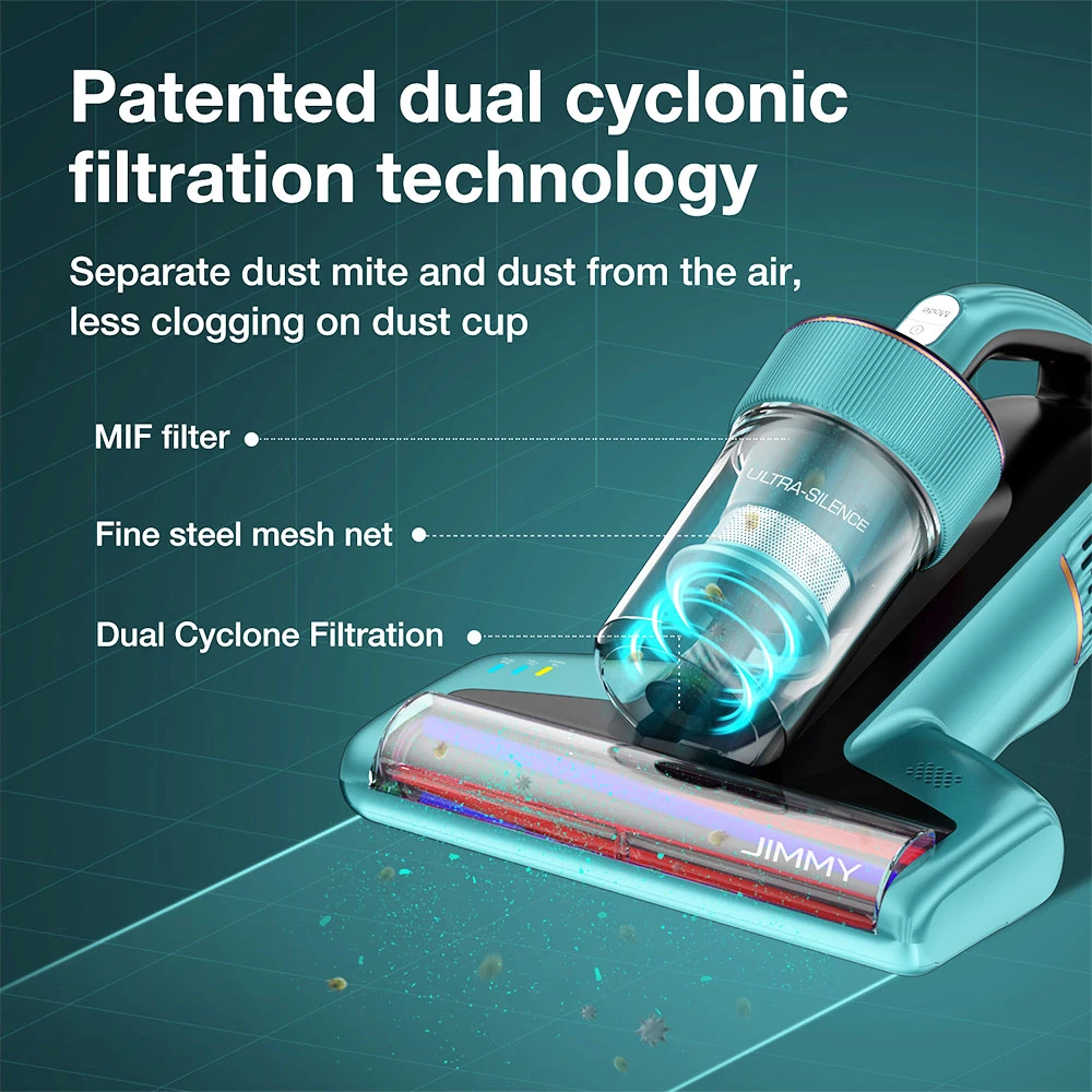 Patented soft rubber strip + soft hair strip composite brush roll, with independent brush roll motor, JIMMY Bx6 can easily pick up fine dust and dust mites deep in the mattress without hurting its surface.