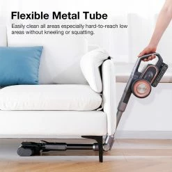 The flexible metal tube moves at different angles automatically when cleaning different areas, and is able to clean under furniture with less effort.