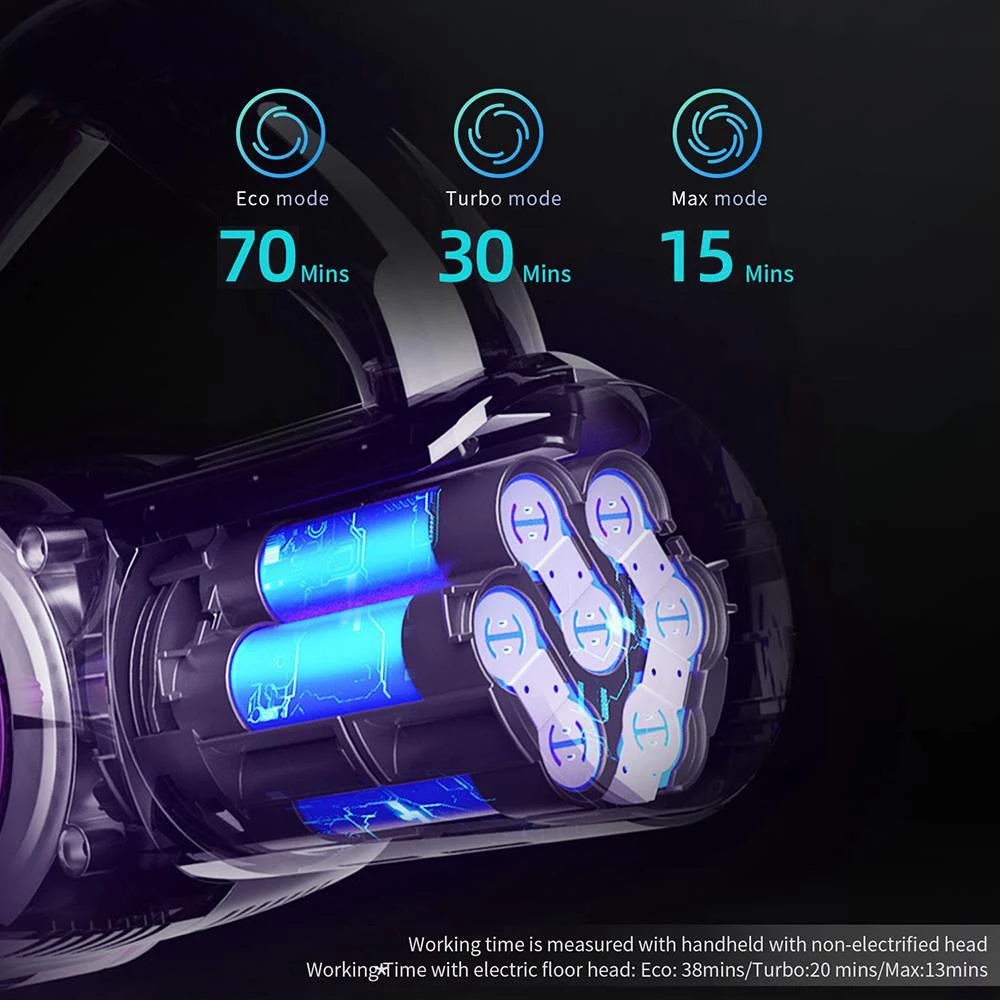 Driven by JIMMY 110,000RPM 55% high efficiency 500W brushless digital motor,H8 Pro reaches 160AW suction power.