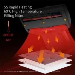 Using nanofiber carbon as the thermal source produces a constant 60 Celsius degree airflow to kill dust mites and bacteria.