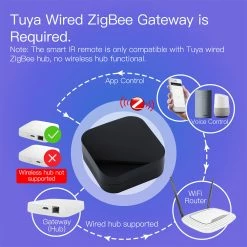 This Tuya smart ZigBee IR remote is designed with Tuya ZigBee wired gateway required for APP configuration and smart controls in Smart Life APP.