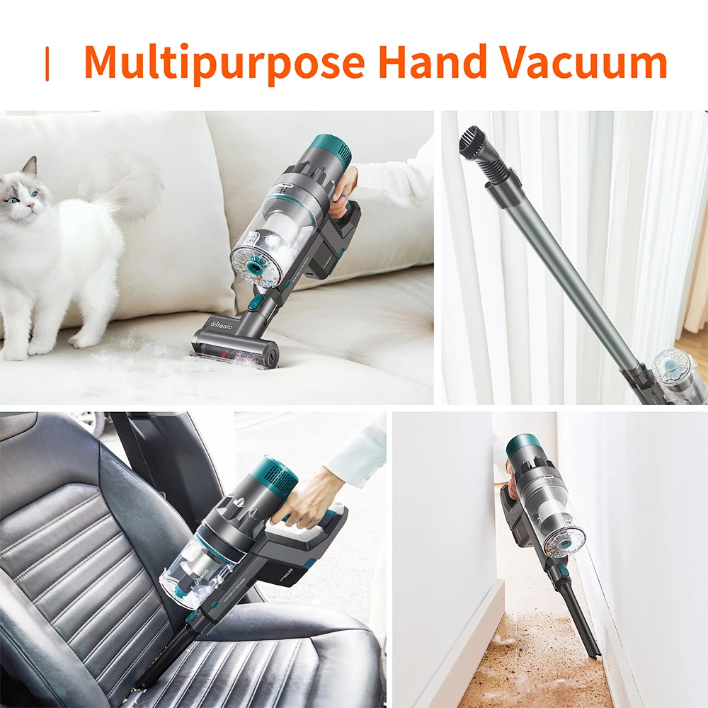 This is 4 in 1 cordless vacuum cleaner not only can be easily converted to an upright one but also comes with a roller brush, round brush, long crevice nozzle and mini motorized tool. These will substantially help vacuum cleaning of different types of surface, objects and furniture including the hard floor, carpet, bed, sofa, and even the interior of a vehicle.