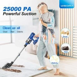 YISORA V110 Battery Handheld Cordless Vacuum Cleaner 265W 25000Pa Strong Suction Power LED Display for Carpets Pet Hair – Blue