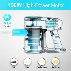YOMA N3 Handheld Cordless Broom Vacuum Cleaner 17kPa Powerful Suction Power 6-in-1 Upright for Home Sofa Pets – Blue
